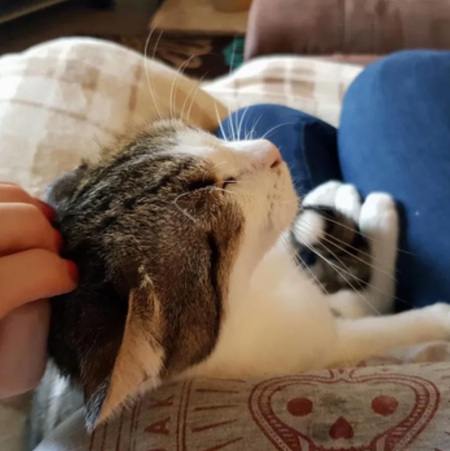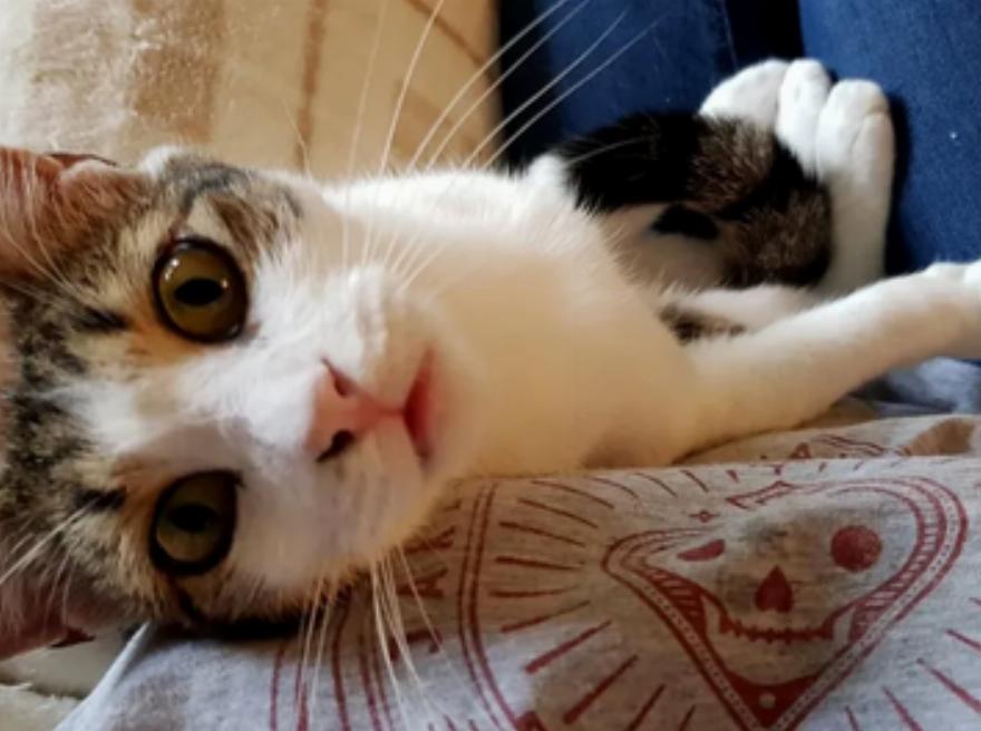 Το γλυκό γατάκι ήταν από την αρχή χαδιάρης. Λάτρευε κάθε επισκέπτη και εθελοντή που συναντούσε. Αν έβρισκε μια άδεια αγκαλιά, ήταν σίγουρο ότι θα πηδούσε πάνω και θα την κρατούσε απασχολημένη και ζεστή.