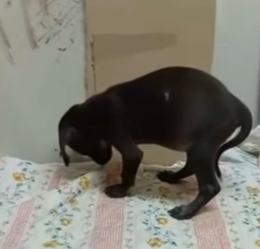 Μέχρι να έρθει ένας άνθρωπος να τη σώσει, είχε βιώσει το “αδιανόητο” σε ηλικία μόλις 3 μηνών. Αντιμετωπίζει την πεινασμένη μικροσκοπική ψυχή οπλισμένη με κοτόπουλο. Περπατάει με τίναγμα γιατί είναι τόσο εύθραυστη και υποσιτισμένη– φαίνεται κάθε κόκκαλο στο μικροσκοπικό της σώμα. Το τρεμάμενο κουτάβι μυρίζει το φαγητό. Υπάρχει πλέον ελπίδα γι’ αυτήν, καθώς το καταλαβαίνει αυτό.
