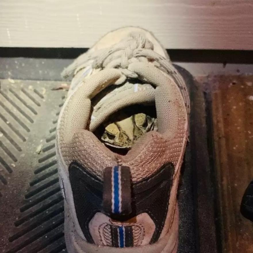Όταν η Jabba δεν πεινούσε ή απλά χρειαζόταν ξεκούραση, επέστρεφε πάντα στο αγαπημένο της σημείο – ένα από τα παπούτσια τρεξίματος του Hood που είχε αφήσει στη βεράντα.