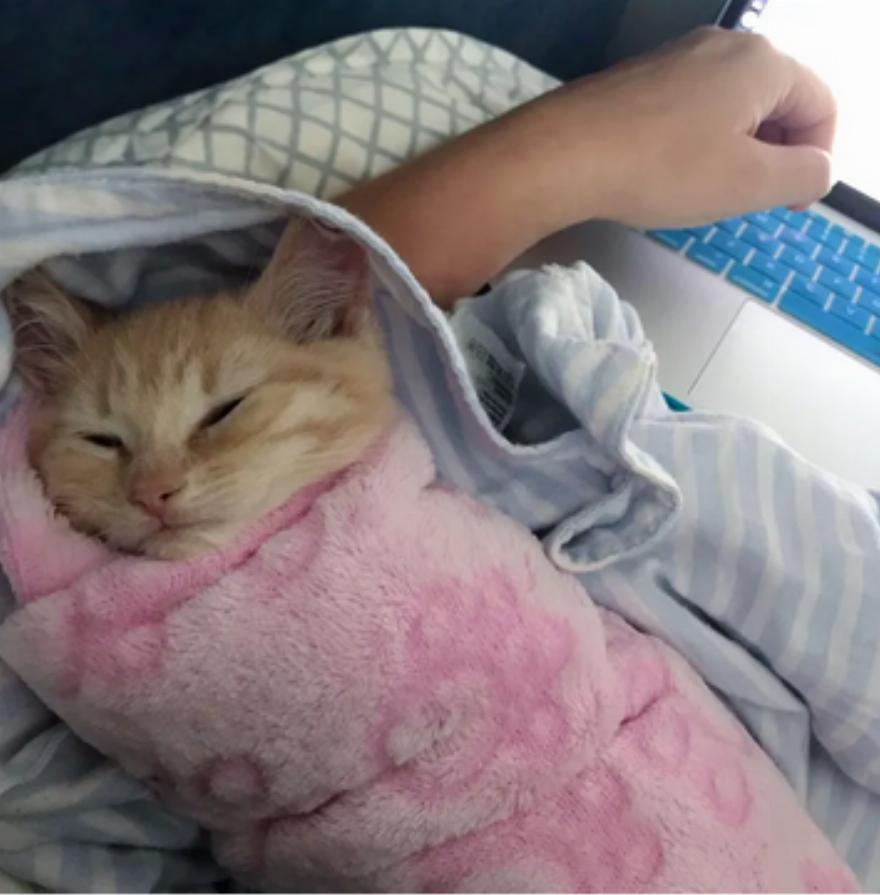 Η Milena από το Μόντρεαλ του Καναδά βρήκε ένα πορτοκαλί γατάκι στο διαδίκτυο, το οποίο χρειαζόταν βοήθεια. Έσπευσε στη διάσωση και έφερε το ηλικίας 2 μηνών αιλουροειδές σε ασφαλές μέρος.