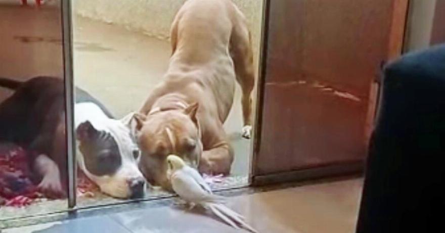 Η Zulema και η Shelby, 2 pit bulls, αγαπούν τον Kevin, το cockatiel φίλο τους, και δείχνουν πάντα ενδιαφέρον για ό,τι θέλει να πει. Και αυτό το πρόσφατο βίντεο έγινε viral, καθώς το cockatiel έχει πολλά να πει.