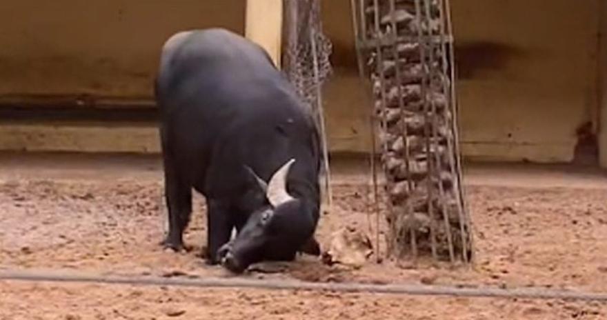 Ο έξυπνος και διακριτικός βούβαλος χρησιμοποίησε ένα από τα κέρατά του για να σκάψει κάτω από το χώμα όπου βρισκόταν η ανάποδη χελώνα και κατάφερε να αναποδογυρίσει το ερπετό!