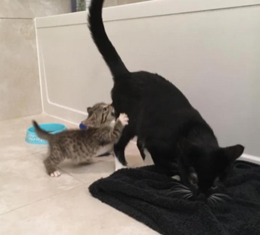 Η Penny Richards, μια ανάδοχη φροντίδα με έδρα το Arlington της Virginia, ήρθε σε επαφή με ένα ζευγάρι γατάκια 4 εβδομάδων που βρέθηκαν στην άκρη του δρόμου. Το ένα από αυτά είχε ένα ελάττωμα και ήταν σε κρίσιμη κατάσταση, ενώ το άλλο ήταν συνέχεια προσκολλημένο στον αδελφό του.