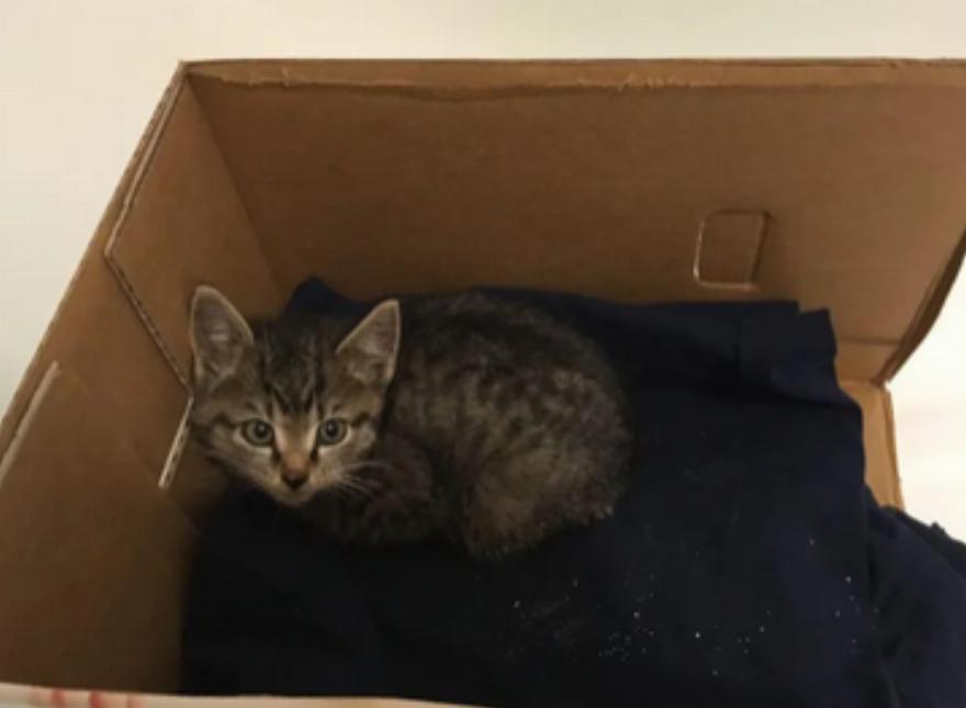 “Ο σύζυγός μου και οι συνάδελφοί του αποσυναρμολόγησαν την αποχέτευση, σκαρφάλωσαν μέσα και κατάφεραν να πιάσουν το γατάκι. Το έβαλαν με ασφάλεια σε ένα κουτί και ο σύζυγός μου το πήγε σε μένα στη δουλειά, ώστε να το φροντίσω και να το πάρω σπίτι”.