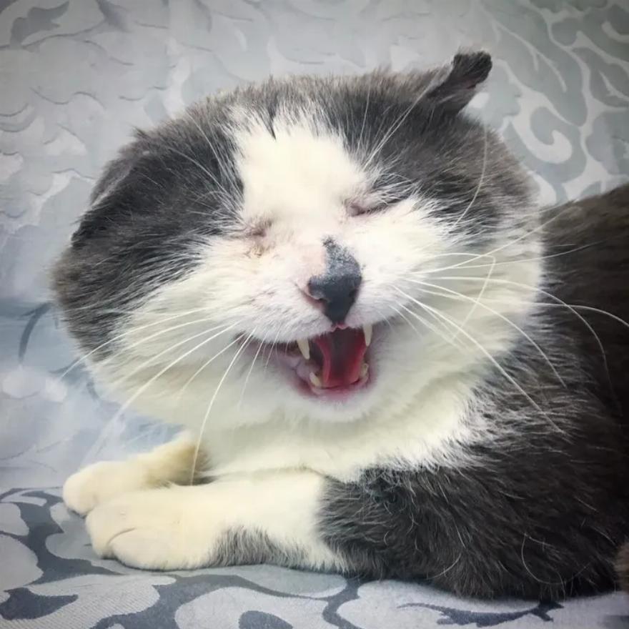 Πριν από πέντε μήνες, αυτός ο 6χρονος γάτος βρέθηκε βαριά άρρωστος και μεταφέρθηκε στο Chatons Orphelins Montréal, καθώς χρειαζόταν άμεση ιατρική φροντίδα. “Το γατάκι ζούσε σε μια γειτονιά (στο Μόντρεαλ του Καναδά). Κατάφερε να επιβιώσει το χειμώνα μόνος του, παρόλο που το ένα του αυτί πάγωσε”, μοιράστηκε η Celine Crom από τη διάσωση.