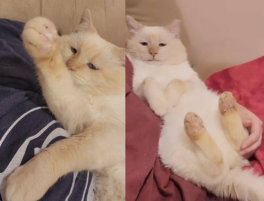 “Δεν είναι επίσης υπερβολικά δραστήριος και δεν ενδιαφέρεται για τα παιχνίδια. Δεν εντοπίζει καν με τα μάτια του – αυτό δεν είναι γάτα που κυνηγάει”. Ο Θίοντορ γεννήθηκε για να είναι αγκαλίτσας.