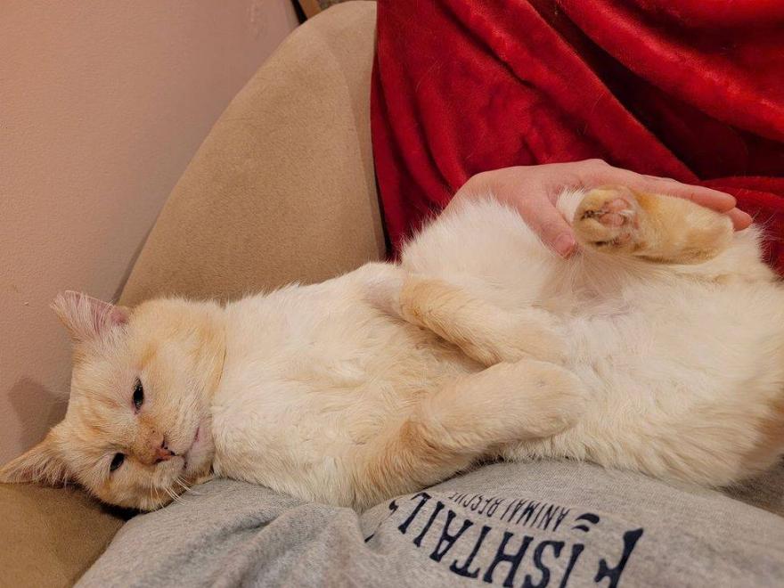 “Είναι επίσης FIV+, αλλά δεν έχει ούτε ένα επιθετικό κόκκαλο στο σώμα του, οπότε είναι ασφαλής γύρω από άλλες μη επιθετικές γάτες”.