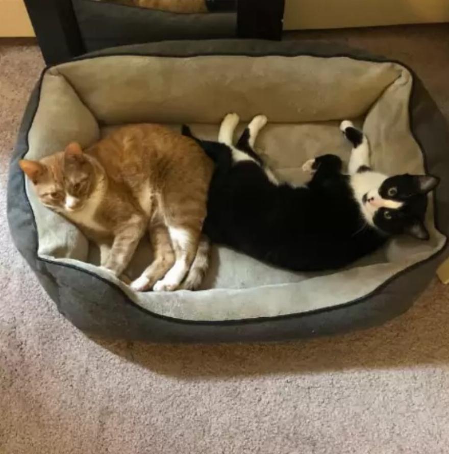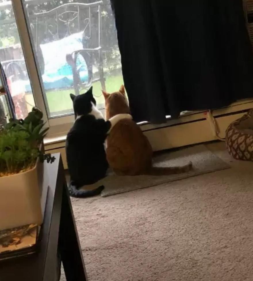 Ένα Σάββατο του περασμένου μήνα, η Patricia εκμεταλλευόταν μια σπάνια στιγμή ηρεμίας για να φάει πρωινό και να διαβάσει ένα βιβλίο, όταν άρχισε να πέφτει καταιγίδα. Σηκώθηκε για να κοιτάξει έξω από το παράθυρο και έπιασε τις δύο γάτες της σε μια μυστική στιγμή αδελφικής αγάπης.