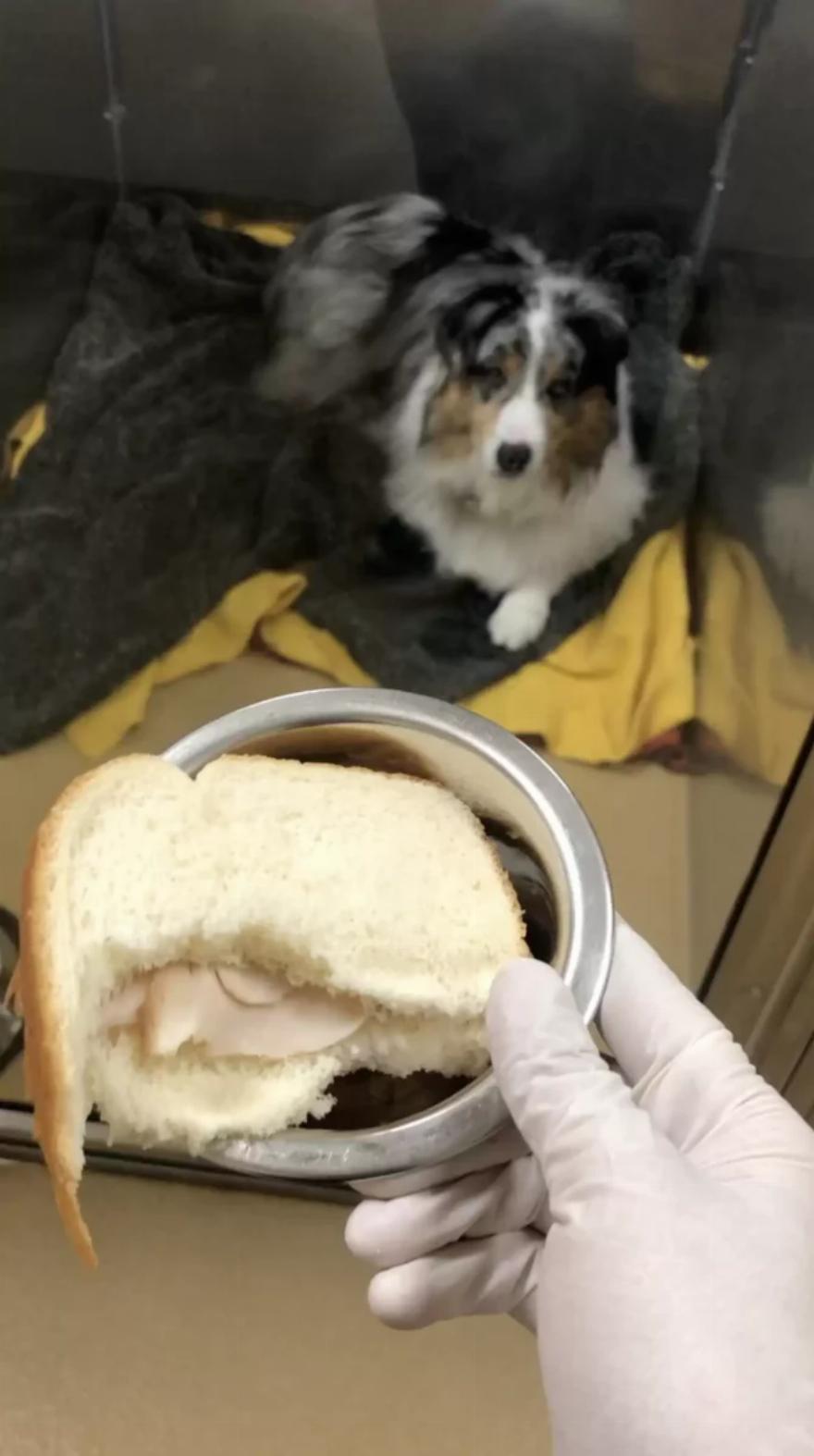 Αλλά όταν έφεραν το σάντουιτς στο κλουβί του Bandit, δεν το καταβρόχθισε όπως ήλπιζαν. Αντιθέτως, πήρε απαλά το σάντουιτς από τα χέρια τους, το τοποθέτησε στο κρεβάτι του και έβαλε το κεφάλι του πάνω του.