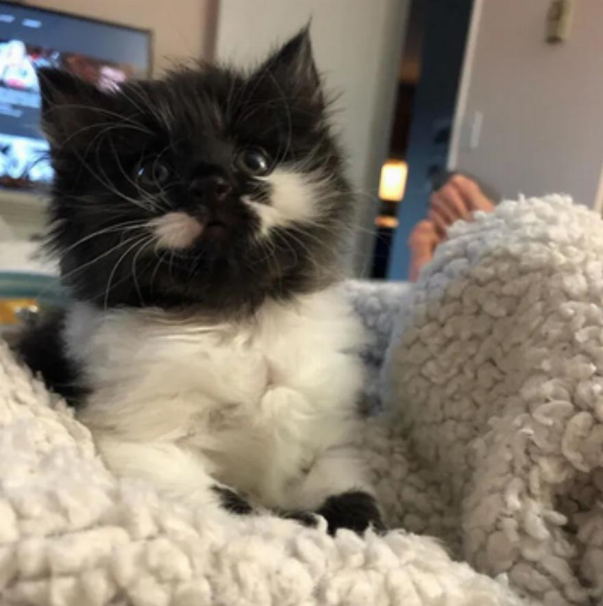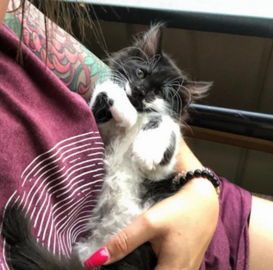 Το γλυκό γατάκι, που τώρα ονομάζεται Piper, έχει μεγαλώσει και είναι γεμάτο αυθάδεια. Έχει μια μεγάλη σκυλίτσα αδελφή, την Koda, που έχει γίνει ο καλύτερός της φίλος.