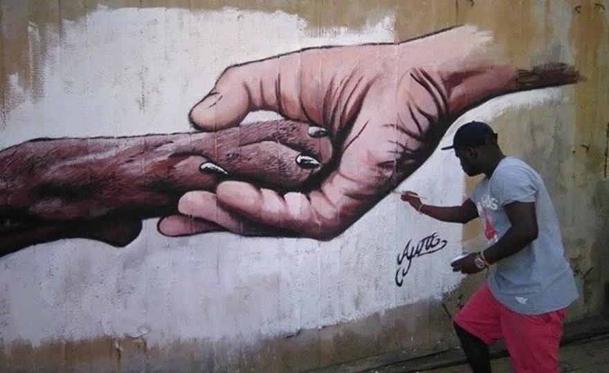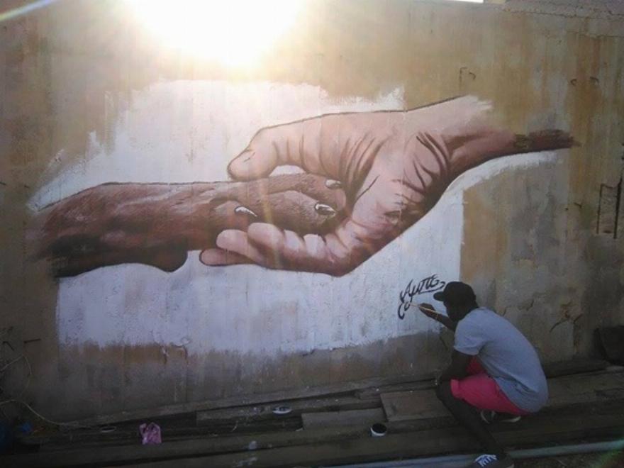 Το καταπληκτικό γκράφιτι που ζωγράφισε ένας νεαρός στο καταφύγιο του Περάματος, αποδεικνύοντας την αγάπη του για τα ζώα.