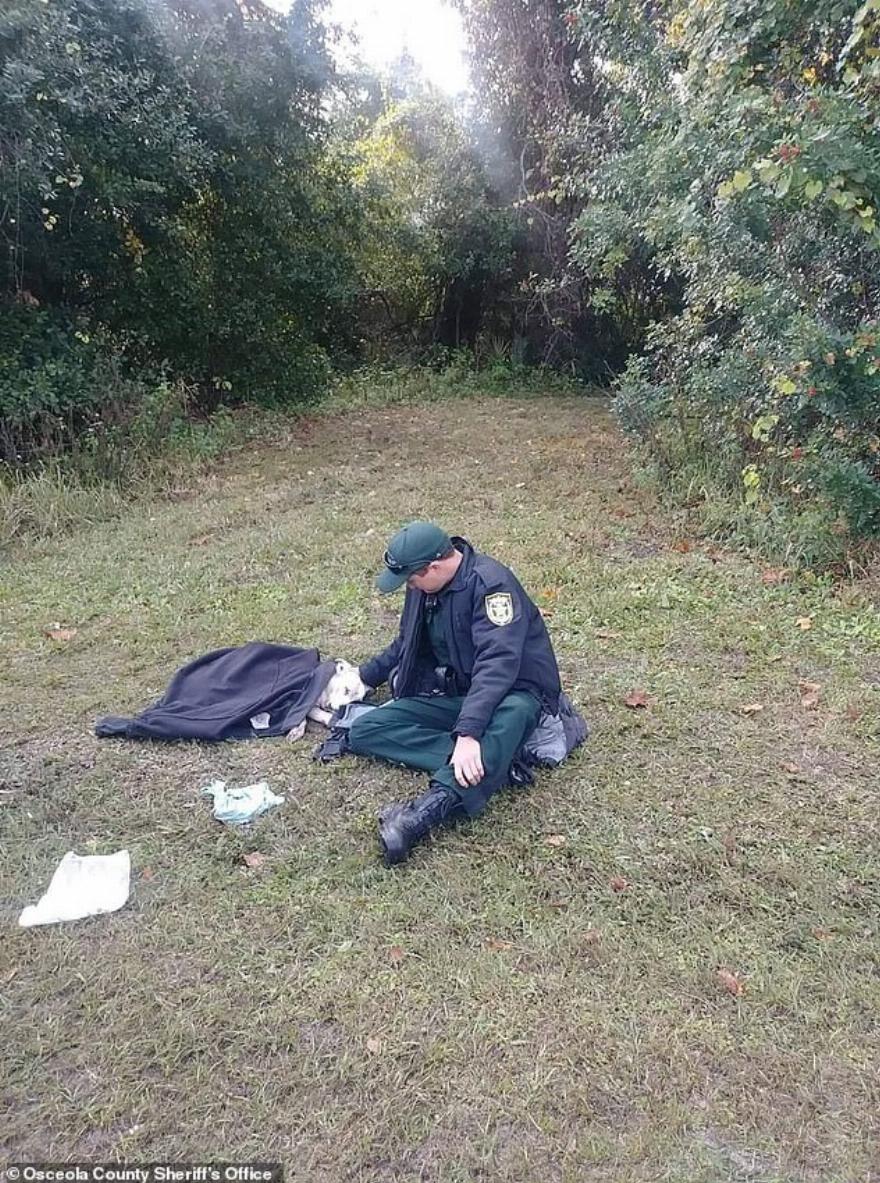 Το γύρο του κόσμου η φωτογραφία με τον αξιωματικό από τη Φλόριντα που τον δείχνει να αγκαλιάζει έναν τραυματισμένο σκύλο και να τον σκεπάζει για να τον ζεστάνει.