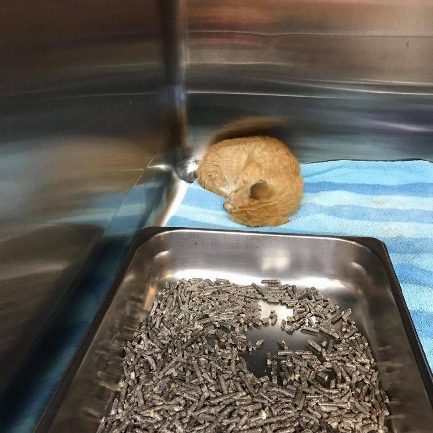 Το ηλικίας 6 εβδομάδων γατάκι μεταφέρθηκε στο Κτηνιατρικό Νοσοκομείο Port Royal (στο Port Royal), όπου του έγιναν αιματολογικές εξετάσεις και ακτινογραφίες θώρακος για κατάποση φυσιολογικού ορού. Ο μικρός είχε μερικές μικρές γρατζουνιές, αλλά κατά τα άλλα ήταν σε καλή κατάσταση.