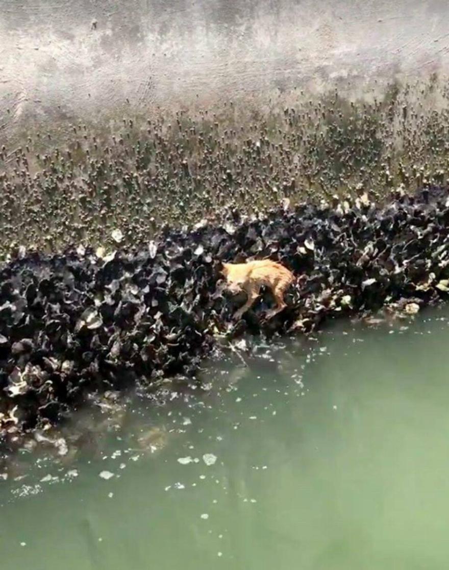 Όταν πλησίασαν πιο κοντά, συνειδητοποίησαν ότι επρόκειτο για ένα μικροσκοπικό τριχωτό ζώο που γαντζωνόταν στα στρείδια για να κρατηθεί στη ζωή.