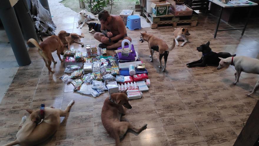 Όταν το ζευγάρι έφτασε στο νησί, άρχισε να υιοθετεί σκύλους και πήρε 15 από αυτούς. Δύο από τα σκυλιά ήταν τυφλοί και είχαν άλλες τέσσερις αναπηρίες.