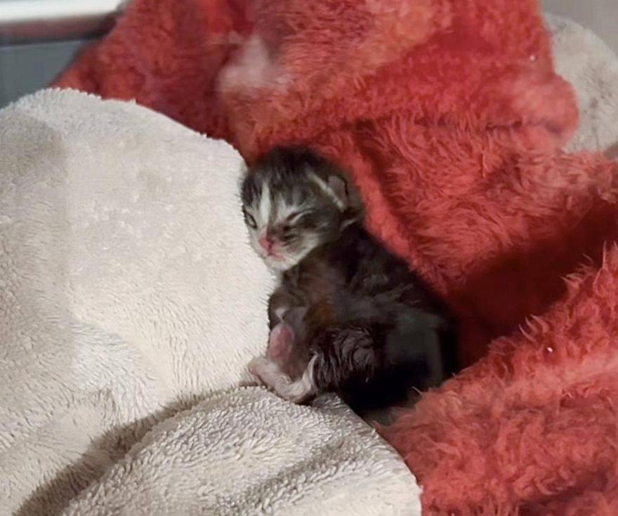 Το γατάκι ήταν πολύ μικρό και αδύναμο. Η Emilie μπόρεσε να επέμβει εγκαίρως και την έφερε σε ασφαλές μέρος.