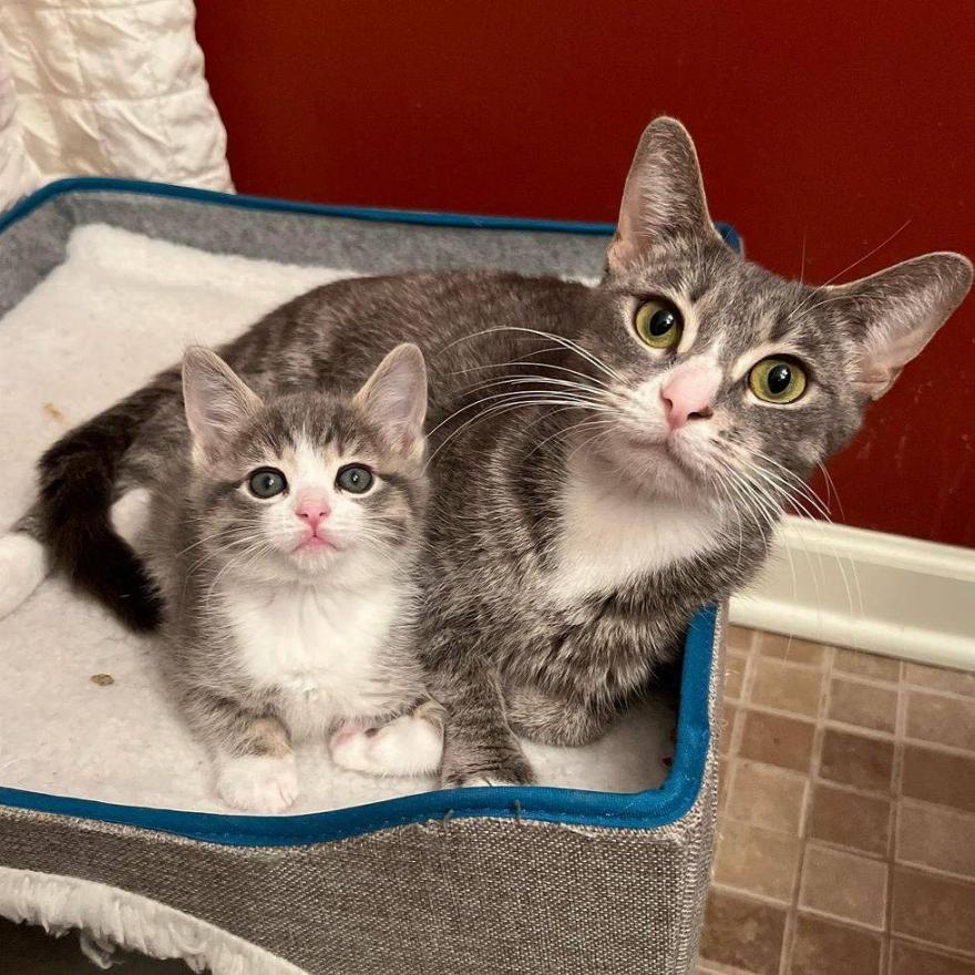 Δύο γάτες πήγαν στα ανάδοχα σπίτια τους για να τις φροντίσουν εθελοντές. Η Emilie ανέλαβε τη μέλλουσα μαμά γάτας, ώστε να έχει ένα άνετο παιδικό δωμάτιο για να μεγαλώσει τα μωρά της.
