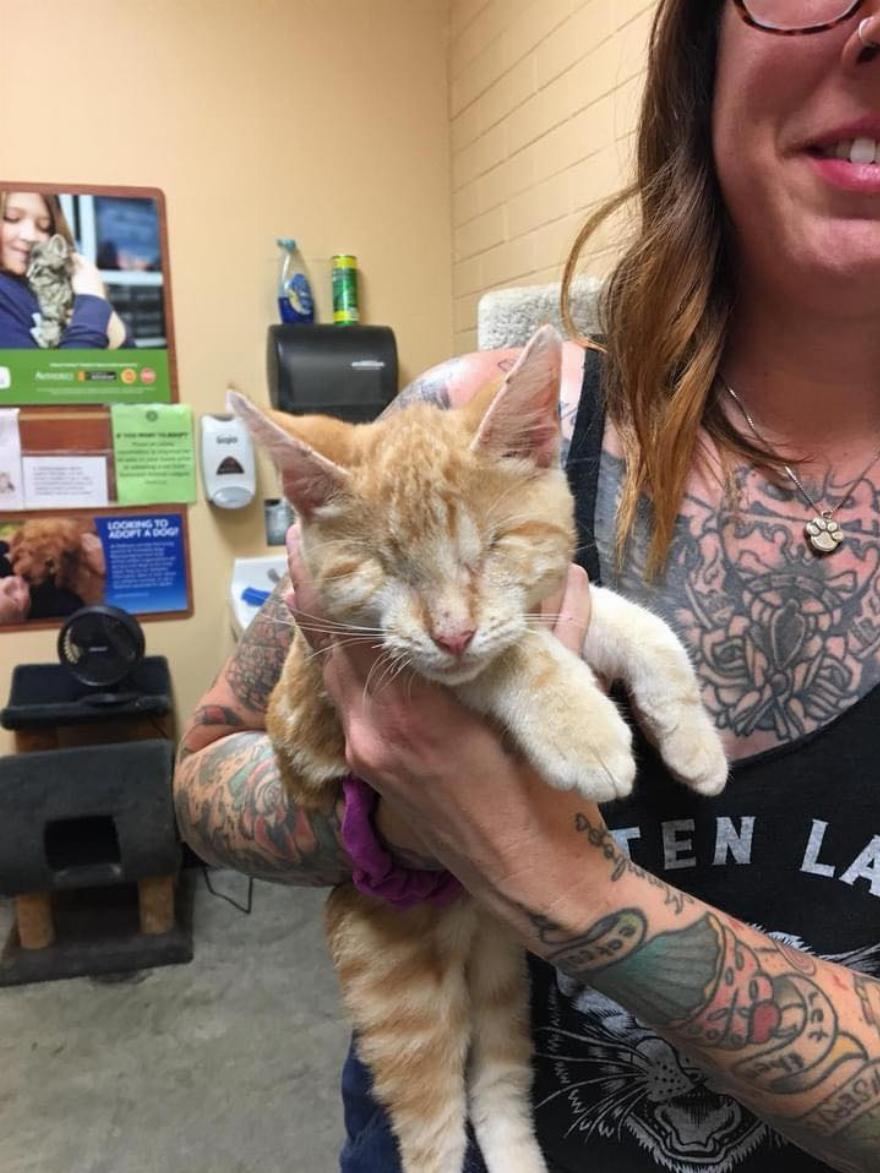 Η έκκληση έγινε αντιληπτή από έναν τεχνικό κτηνίατρο, ο οποίος επικοινώνησε με τη φίλη της, Dani Giroux, αποκαλούμενη χαϊδευτικά “Dani The Cat Lady”. Η Dani έχει αναλάβει την αναδοχή νεογέννητων γατών, τη διάσωση και τη διάσωση γατών εδώ και χρόνια. Ήξεραν ότι το μικρό αγόρι θα χρειαζόταν ένα στοργικό ανάδοχο σπίτι για να επιβιώσει.