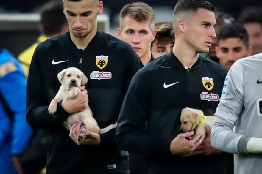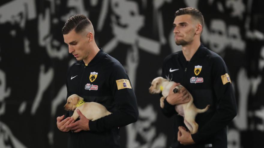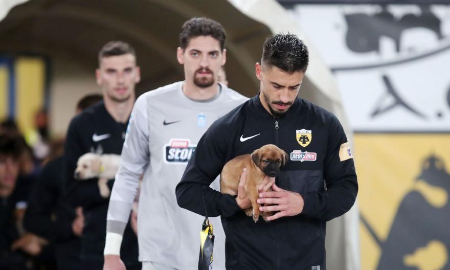 Οι παίχτες της ΑΕΚ αγκαλιά με κουταβάκια