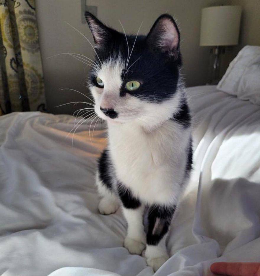 Μια ασπρόμαυρη γάτα βρέθηκε να περιπλανιέται στους δρόμους του Dundas (στο Οντάριο του Καναδά) με μια βαριά εγκυμονούσα κοιλιά. Καλοί Σαμαρείτες την πλησίασαν και συνειδητοποίησαν ότι χρειαζόταν ιατρική φροντίδα και ένα μέρος για να μείνει.