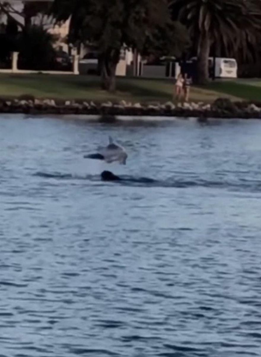 “Ο σύντροφός μου και εγώ κάναμε πικνίκ γύρω στις 8:00 μ.μ. κατά μήκος του Patawalonga Creek, όταν ακούσαμε κάποιον να φωνάζει το όνομα του σκύλου του”, εξήγησε ο βιντεογράφος στο ViralHog. “Κοίταξα κάτω στο νερό και είδα ένα μαύρο λαμπραντόρ να κολυμπάει στη μέση του ρυακιού. Με μια δεύτερη ματιά, υπήρχε ένα δελφίνι και το μαύρο λαμπραντόρ κωπηλατούσε πίσω του σαν να έπαιζαν και να τα πήγαιναν καλά”.