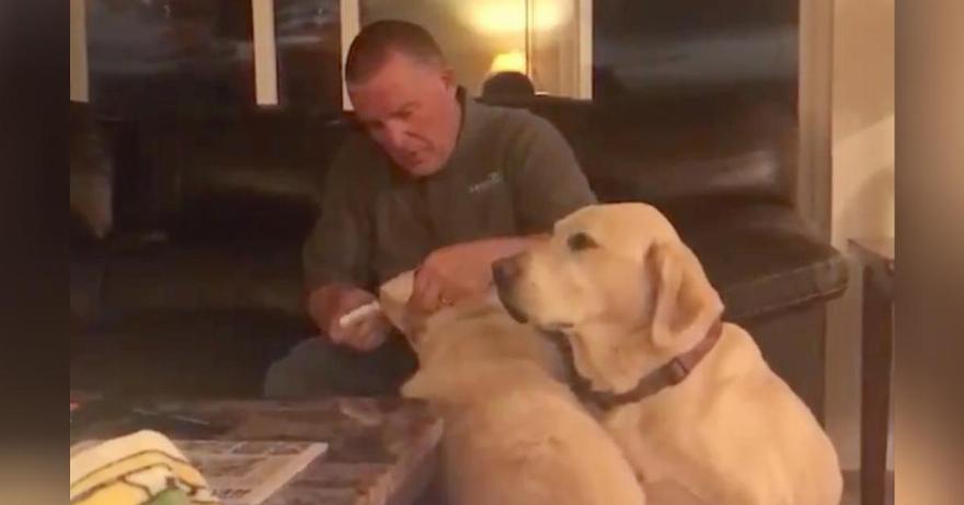 Όταν ο ιδιοκτήτης το βλέπει αυτό αποφασίζει να προσποιηθεί ότι δίνει σταγόνες στα αυτιά του άλλου σκύλου του και στη συνέχεια τις ακολουθεί με ωραία τρίψιμο αυτιών! Μπορείτε να δείτε στο παρακάτω βίντεο πόσο χαρούμενος είναι ο σκύλος όταν του τρίβουν τα αυτιά! Πόσο αξιολάτρευτο!