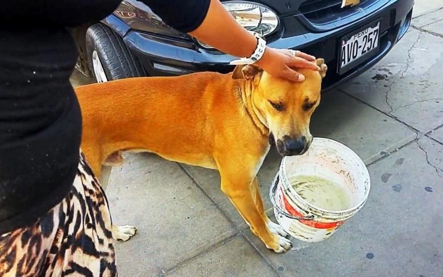 Οι κάτοικοι της πρωτεύουσας του Περού Λίμα συγκλονίστηκαν όταν είδαν έναν αδέσποτο σκύλο να κουβαλάει έναν άδειο κουβά με την ελπίδα να πάρει λίγο νερό μια πολύ ζεστή μέρα.