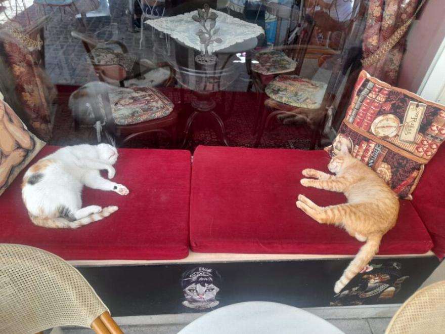 Αλλά ας μιλήσουμε για την καλή πλευρά των πραγμάτων. Ένα λοιπόν τέτοιο pet friendly μαγαζί, όπως μαθαίνουμε από τη Margarita Papa που έβγαλε και τις φωτογραφίες, είναι και το cafe Je t’aime στο Ρέθυμνο. Ένας υπέροχος χώρος όπου πίνεις τον καφέ σου ή το ποτό σου δίπλα σε υπέροχες γατούλες που παίρνουν τον υπνάκο τους χωρίς να ενοχλούν κανέναν.
