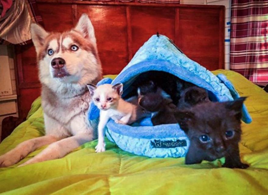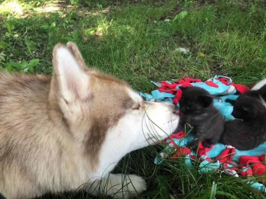 Η Banner, πάντα το εξυπηρετικό και αφοσιωμένο κουτάβι, βγήκε από το δρόμο της για να σώσει νεογέννητα γατάκια από το να πεθάνουν σε ένα σφραγισμένο χαρτόκουτο στο δάσος κοντά στο σπίτι τους.