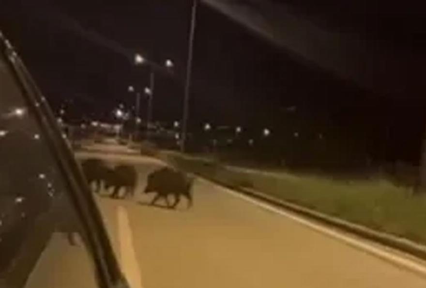Ένα κοπάδι αγριογούρουνων εμφανίστηκε το βράδυ της Τετάρτης στον δρόμο προς την Πτολεμαΐδα, έξω από την επιχείρηση “Τεχνομπετόν”. Οι οδηγοί πρέπει να είναι ιδιαίτερα προσεκτικοί κατά τη διέλευσή τους.