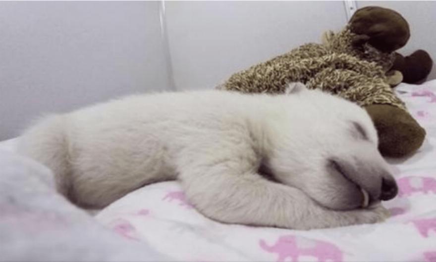 Το βίντεο με ένα μωρό πολικής αρκούδας να κοιμάται με το λούτρινο ελάφι αναρτήθηκε στο διαδίκτυο από τον ζωολογικό κήπο και το ενυδρείο του Κολόμβου στο Πάουελ του Οχάιο προκαλώντας τις γλυκιές αντιδράσεις του διαδικτύου. Δυστυχώς, το μικρό εγκαταλείφθηκε από τη μητέρα του, οπότε το προσωπικό του ζωολογικού κήπου το φροντίζει τώρα.