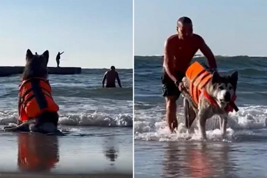 Παρόλο που αυτό το malamute μπορεί να είναι παράλυτο, αποδεικνύει στον κόσμο ότι τίποτα δεν τον εμποδίζει να απολαμβάνει τις εξορμήσεις του στην παραλία και να κολυμπάει στον ωκεανό.